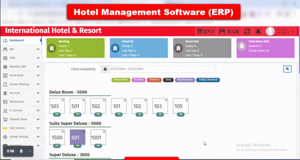 (হোটেলে ফ্রন্ট অফিসার গুরুত্বপূর্ণ ভূমিকা পালন করে, এটিই প্রথম এবং শেষ বিভাগ যেখানে একজন অতিথি যোগাযোগ করেন। আমাদের ইআরপি সফ্টওয়্যার রিয়েল-টাইম তথ্য প্রদর্শন করে যার মাধ্যমে ফ্রন্ট ডেস্ক রুম বুকিং, অতিথি প্রোফাইল, চেক-ইন এবং চেক-আউট প্রক্রিয়া আরও সহজ এবং দক্ষ উপায়ে পরিচালনা করতে পারে।)